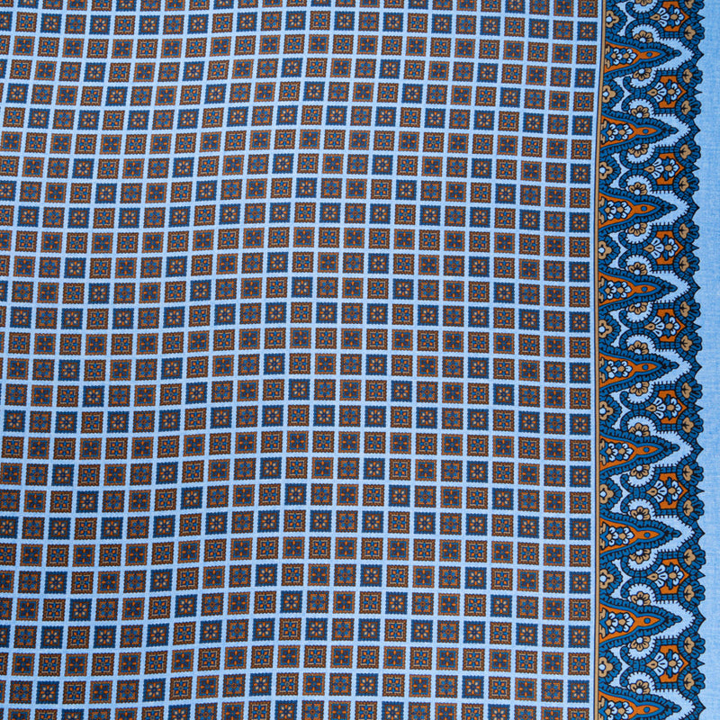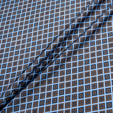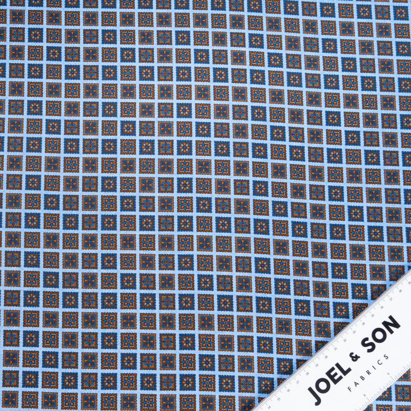 Blue & Brown Square Geo Printed Pure Silk Twill