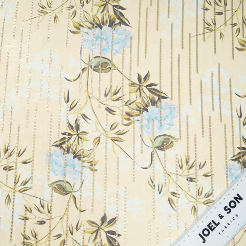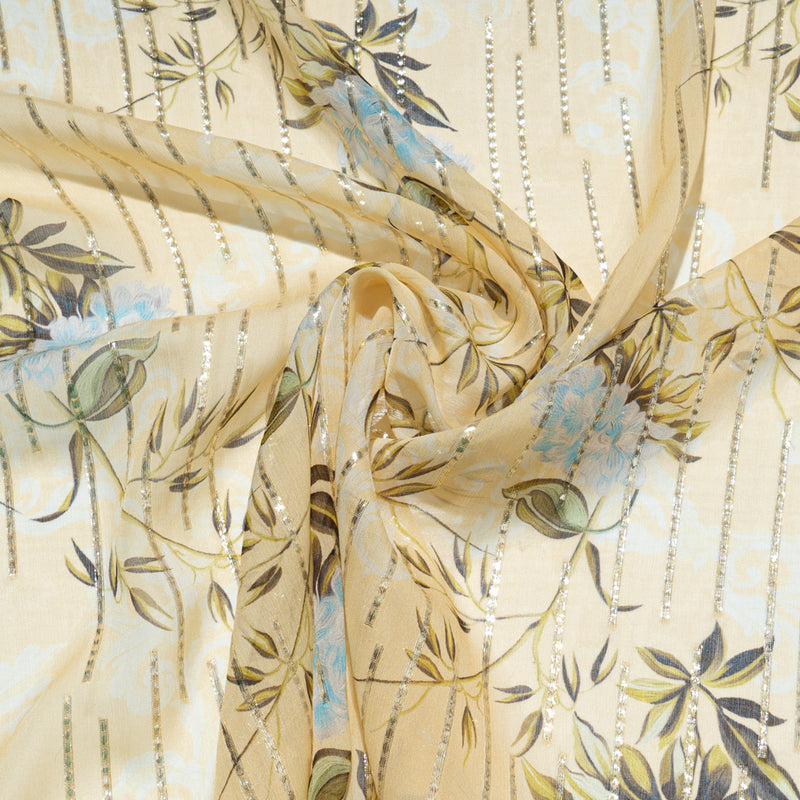 Blue Floral Printed Vanilla Yellow Silk Georgette