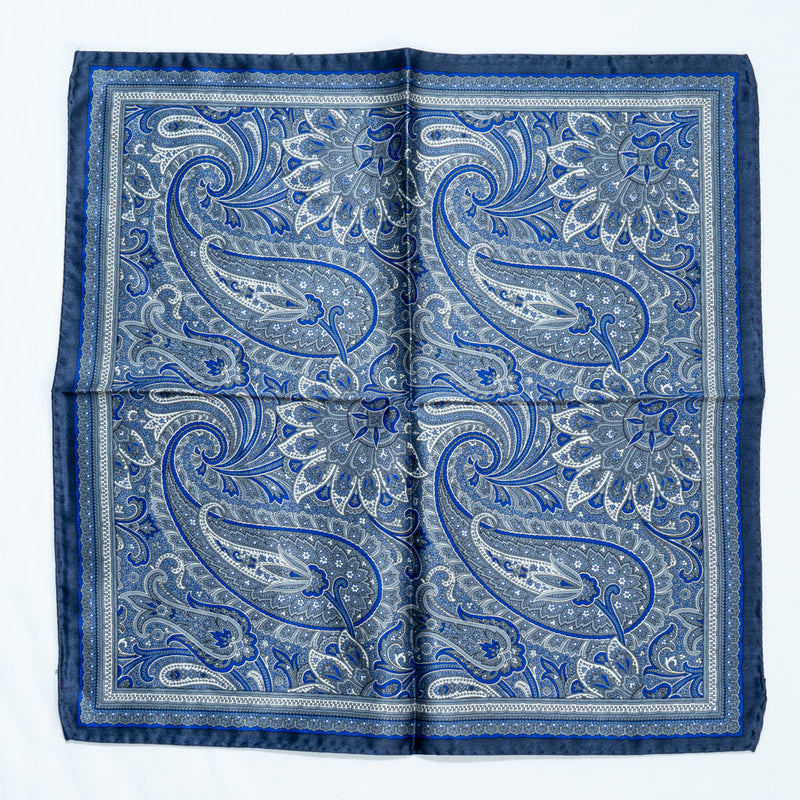 Blue & Grey Paisley Pure Silk Pocket Handkerchief