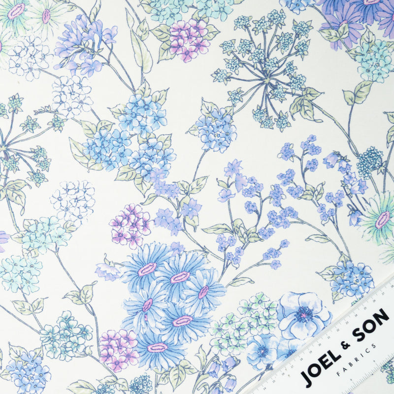 Blue & Lilac Floral Printed Pure Silk Georgette