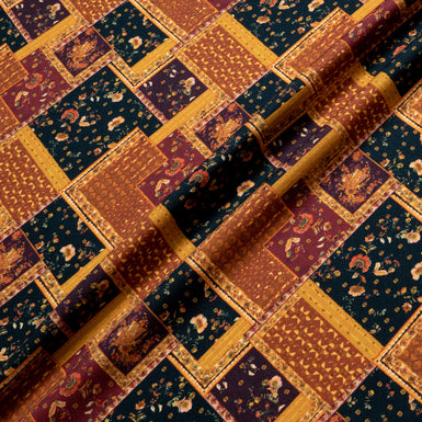Blue & Orange Patchwork Printed Pure Merino Wool