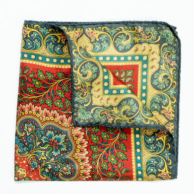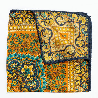 Blue, Orange & Yellow Patterned Silk Twill Pocket Handkerchief