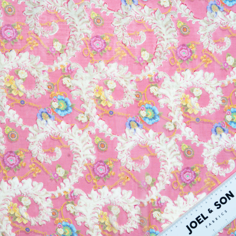 Blue & Pink Floral Double Printed Pink Devoré Velvet