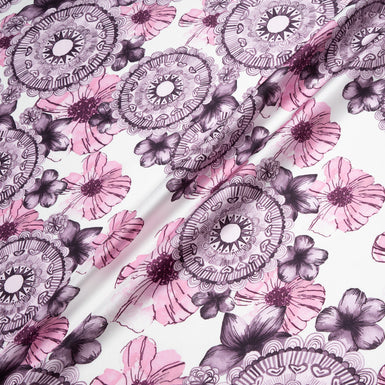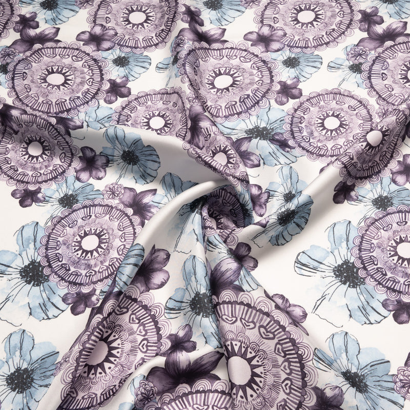 Blue & Plum Printed White Silk Twill