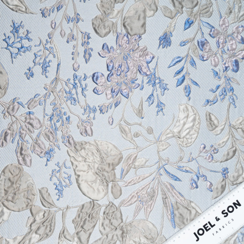 Blue & Taupe Floral Metallic Cloqué