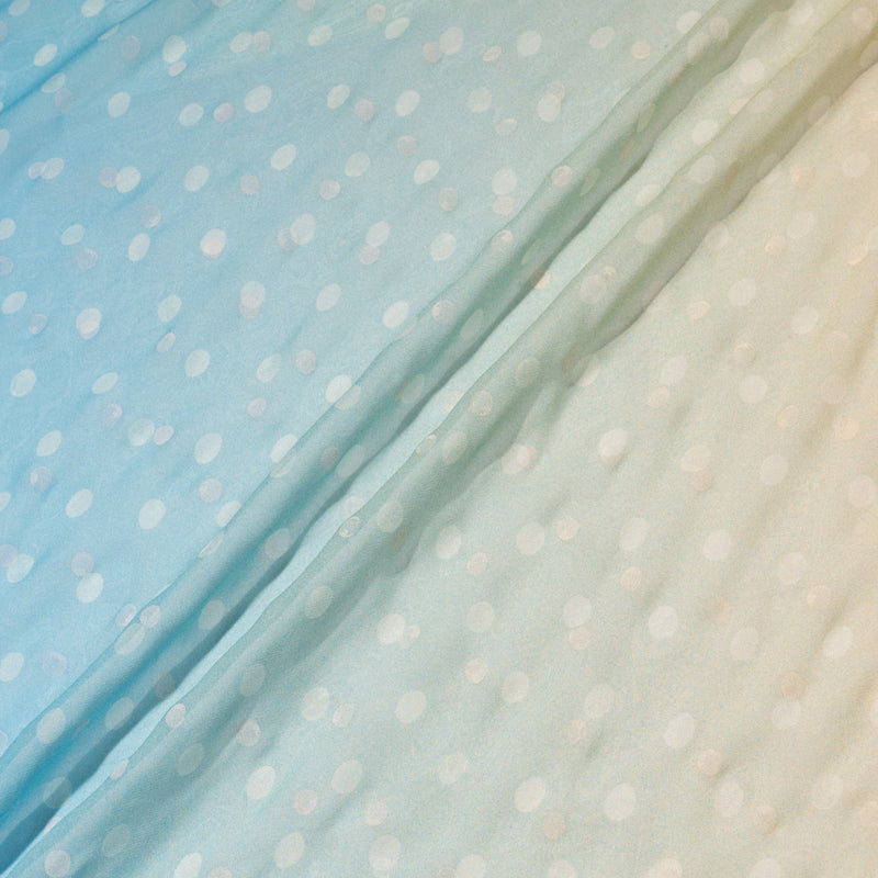 Blue to Vanilla Ombré Spot Vision Printed Silk Georgette