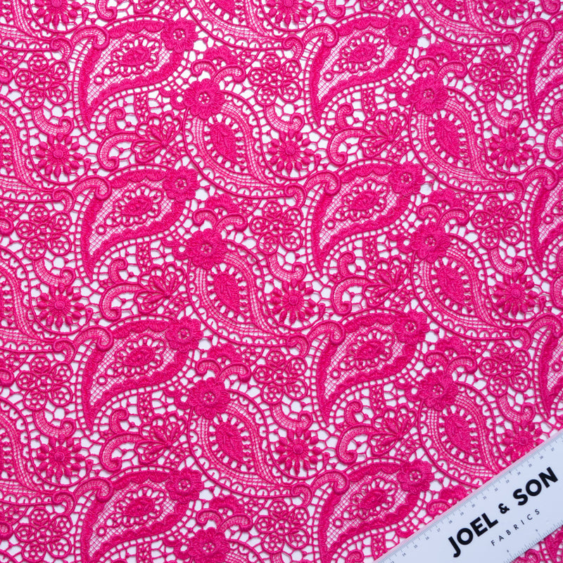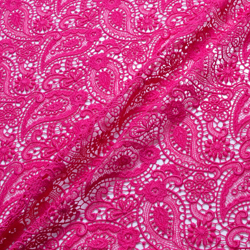 Fuchsia Pink Paisley & Floral Guipure Lace