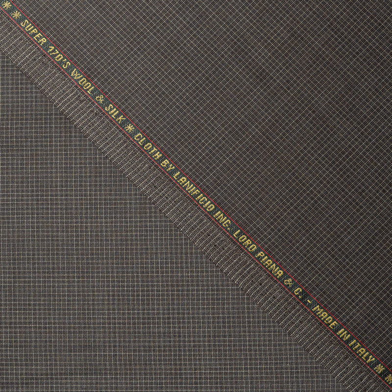 Brown Checkered Super 170s Wool & Silk Blend Suiting