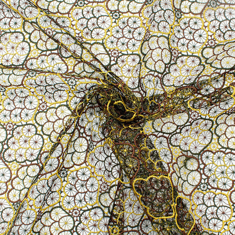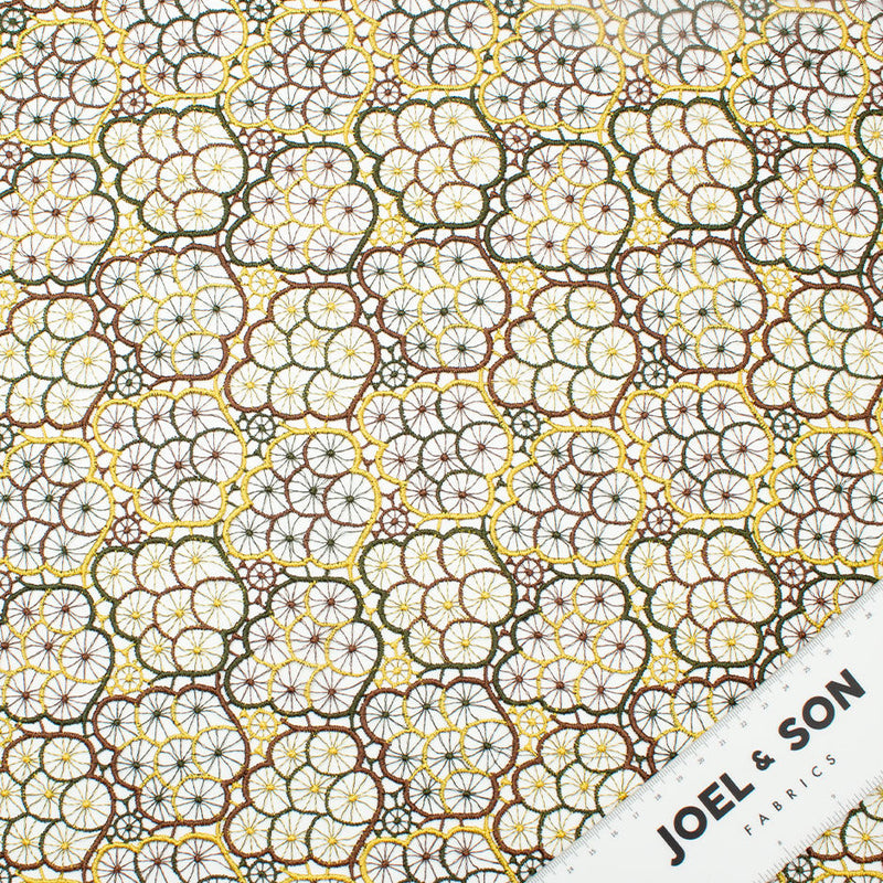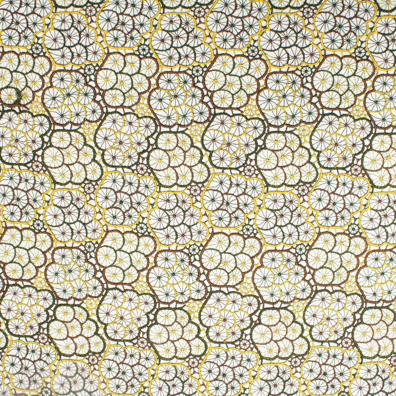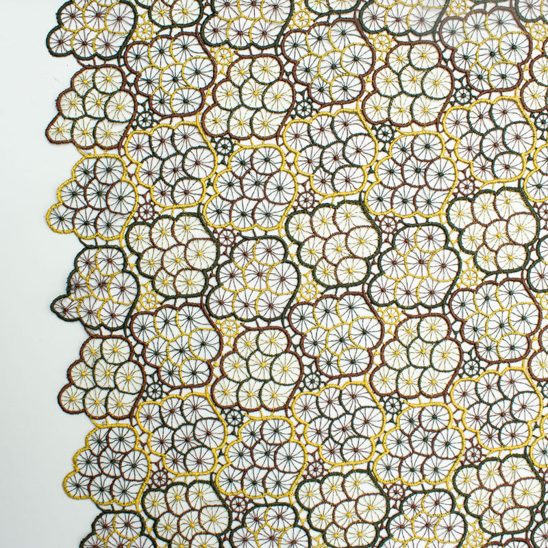 Brown, Yellow & Bottle Green Spiders Web Guipure Lace