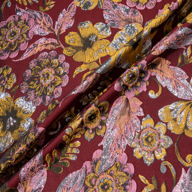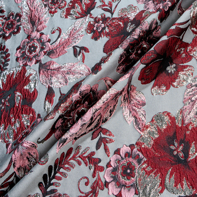 Burgundy & Pink Floral Grey Brocade