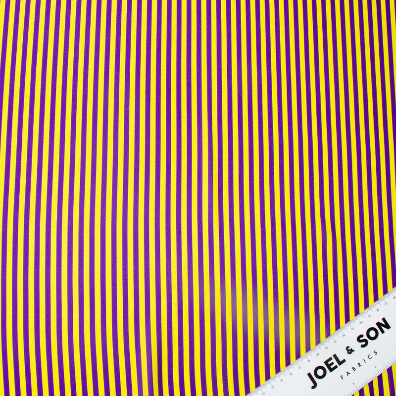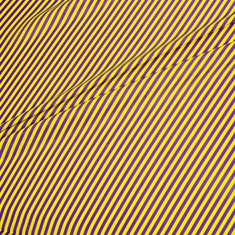 Canary Yellow & Purple Striped Reverse Pure Silk Satin