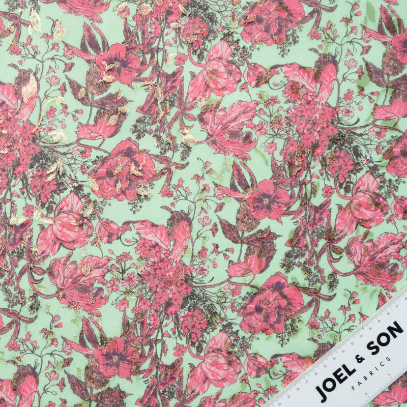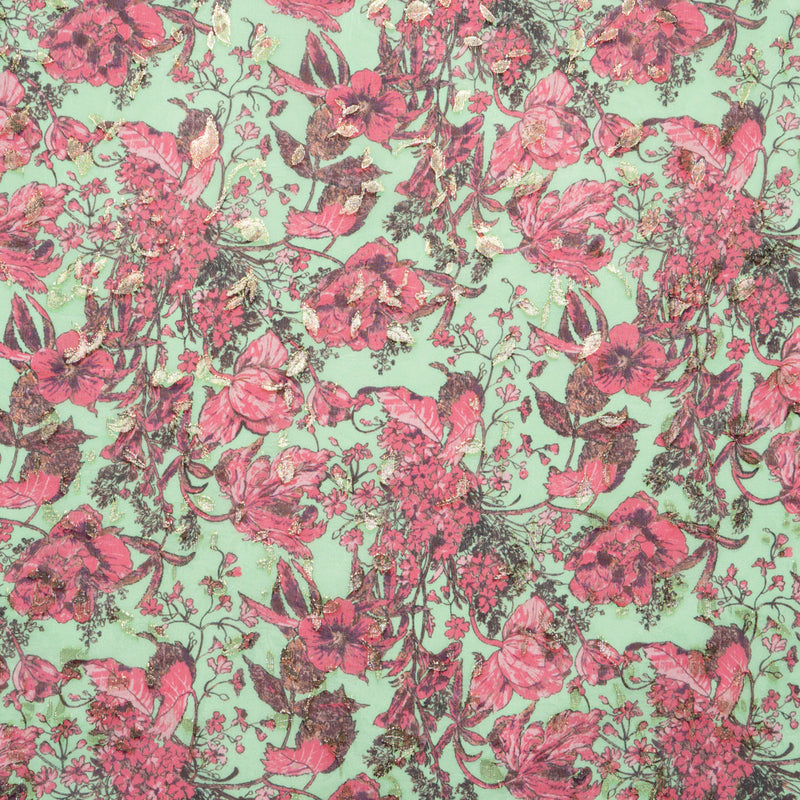 Cherry Red Floral Printed Metallic Jacquard Georgette