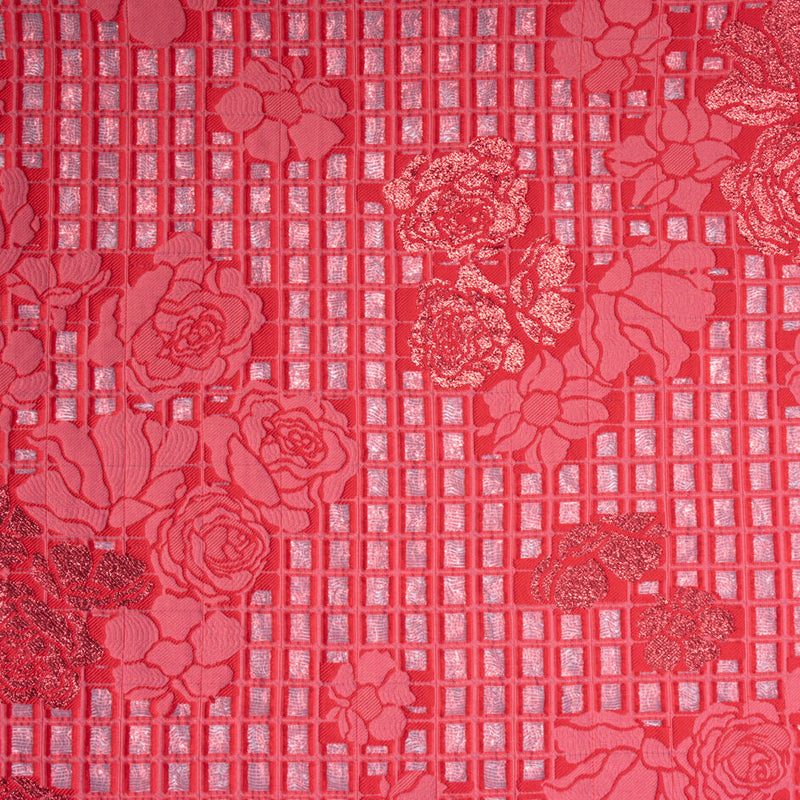 Cherry Red Square & Floral Metallic Cloqué