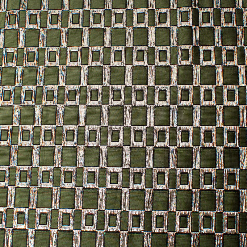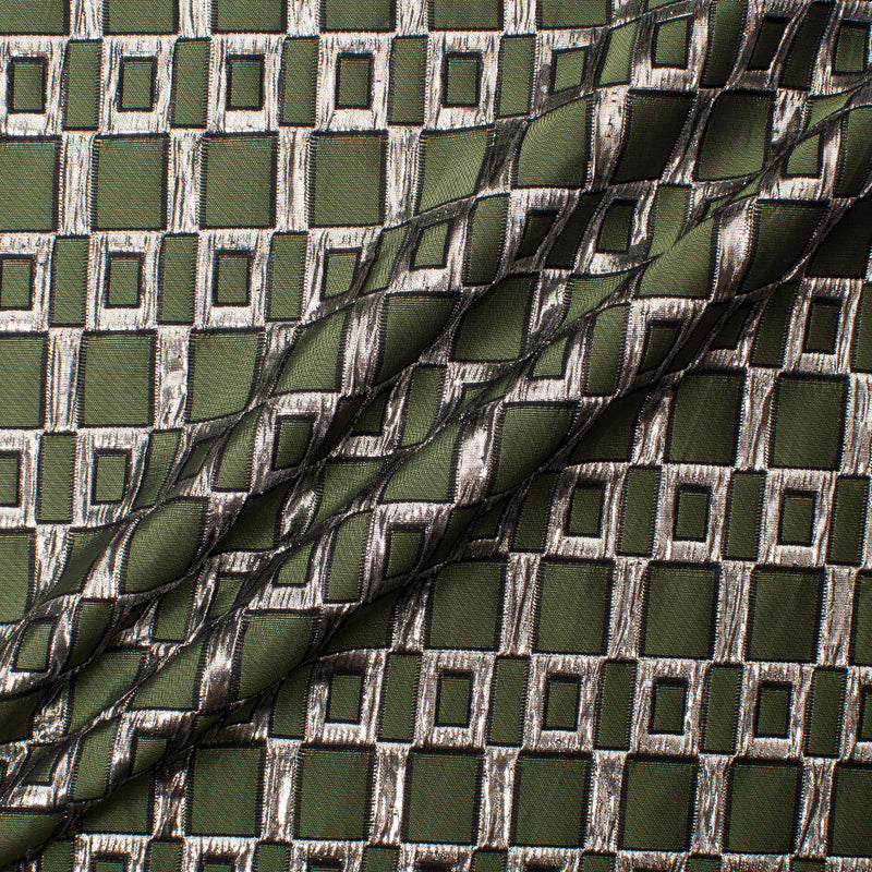 Dark Khaki Green & Silver Metallic Brocade