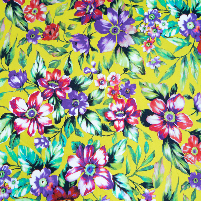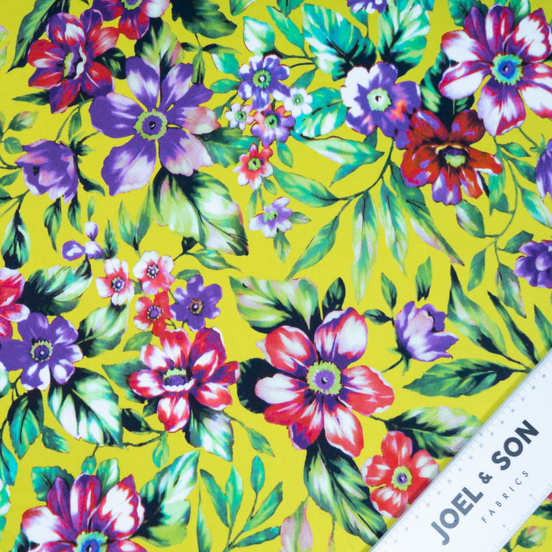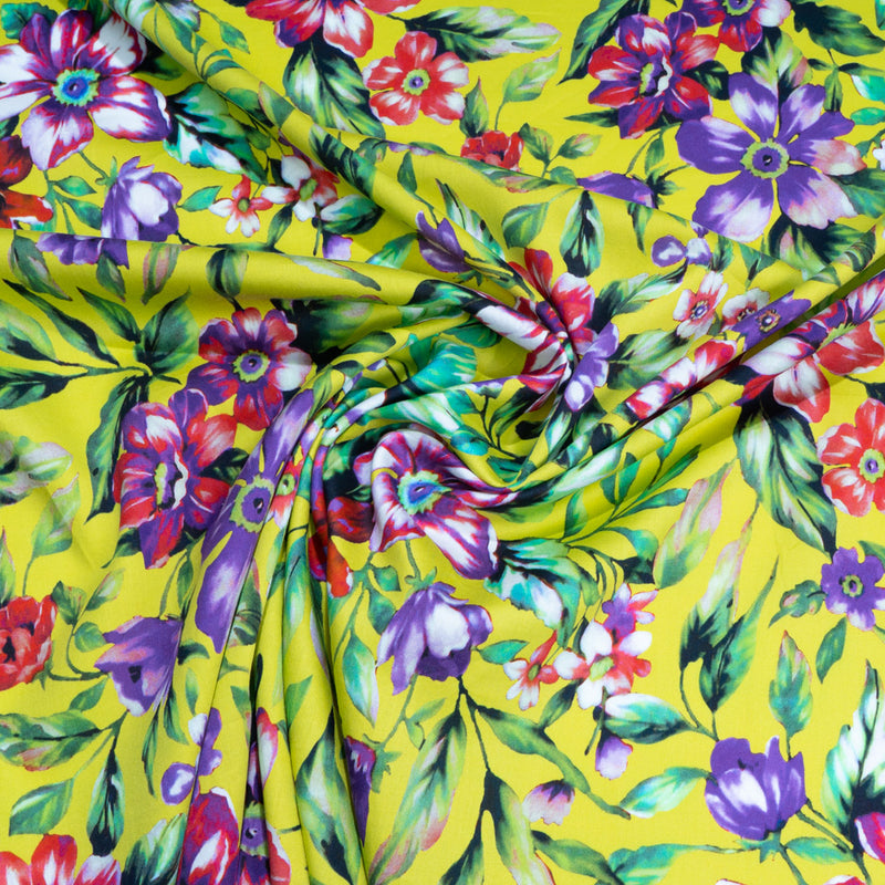 Deep Purple & Pink Floral Printed Bright Green Luxury Cotton