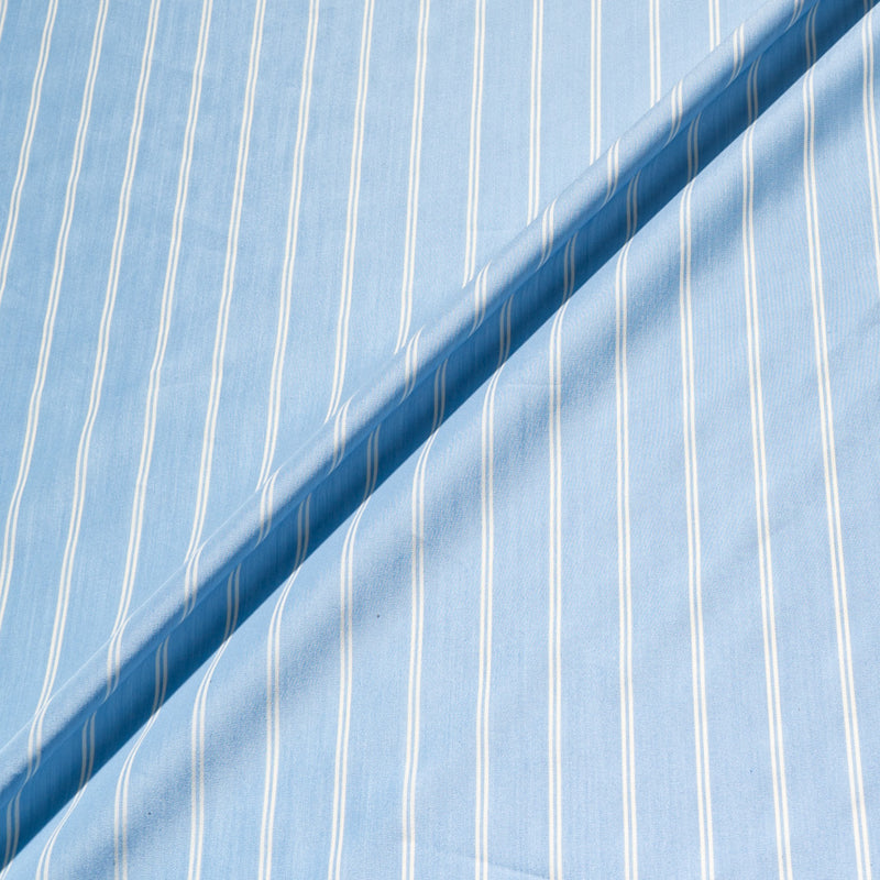 Double Ivory Striped Blue Superfine Silk Blend Shirting