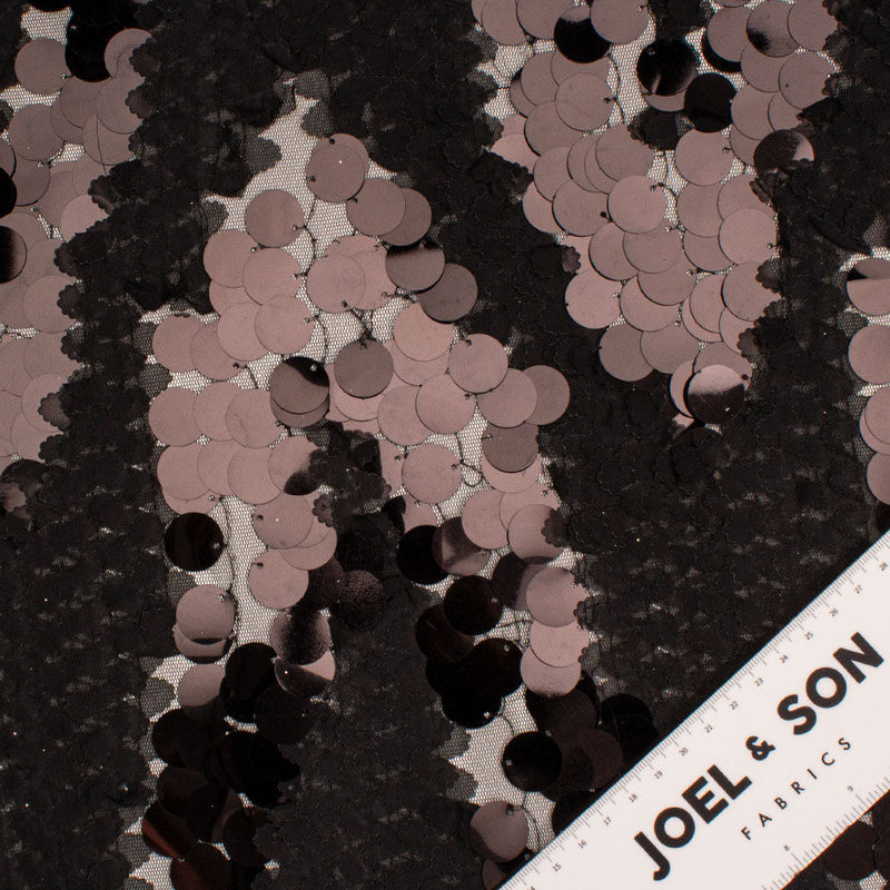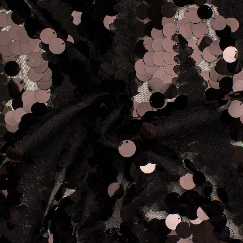 Ebony Black Tulle & Sequinned Embroidered Stretch Tulle