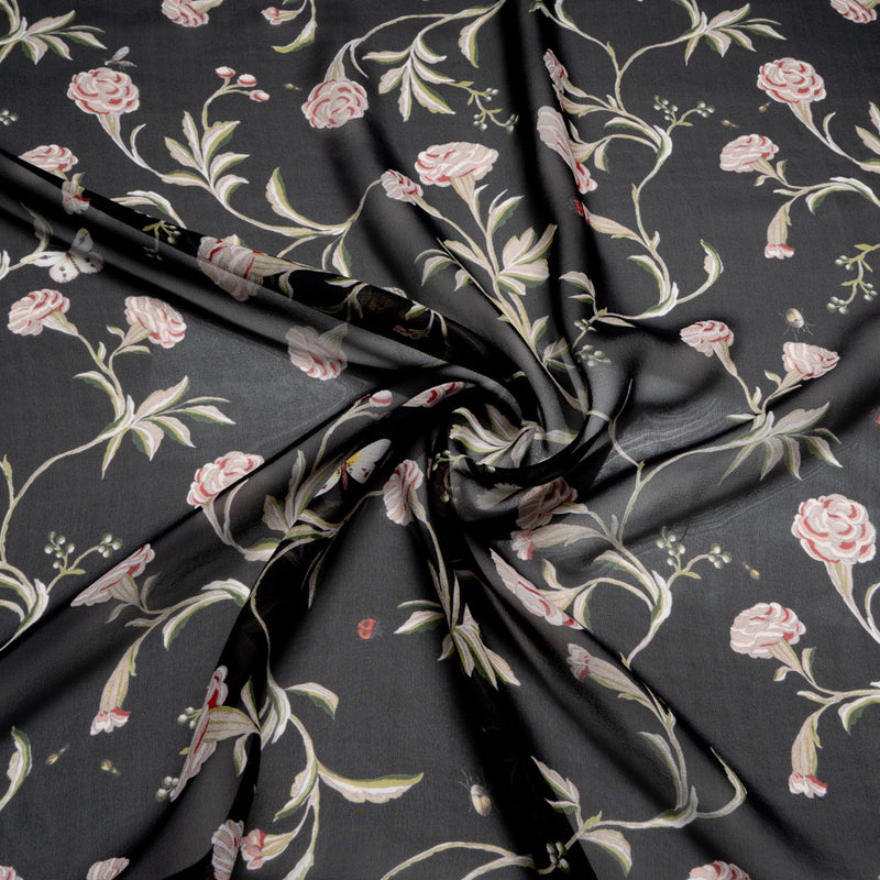 Floral Printed Black Silk Georgette