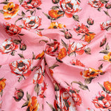 Red Floral Printed Candy Pink Pure Linen