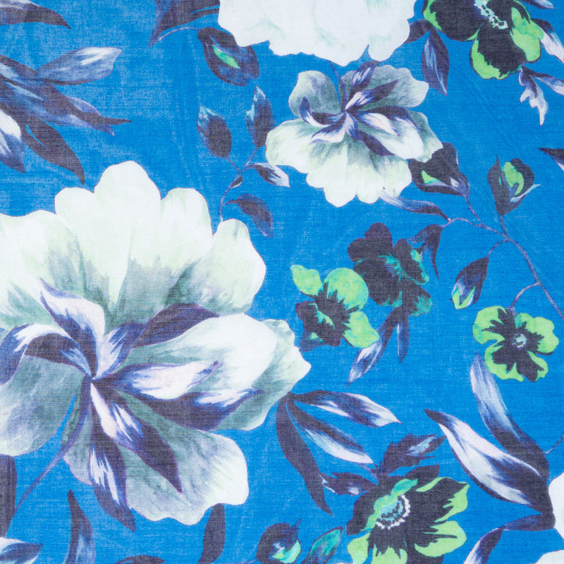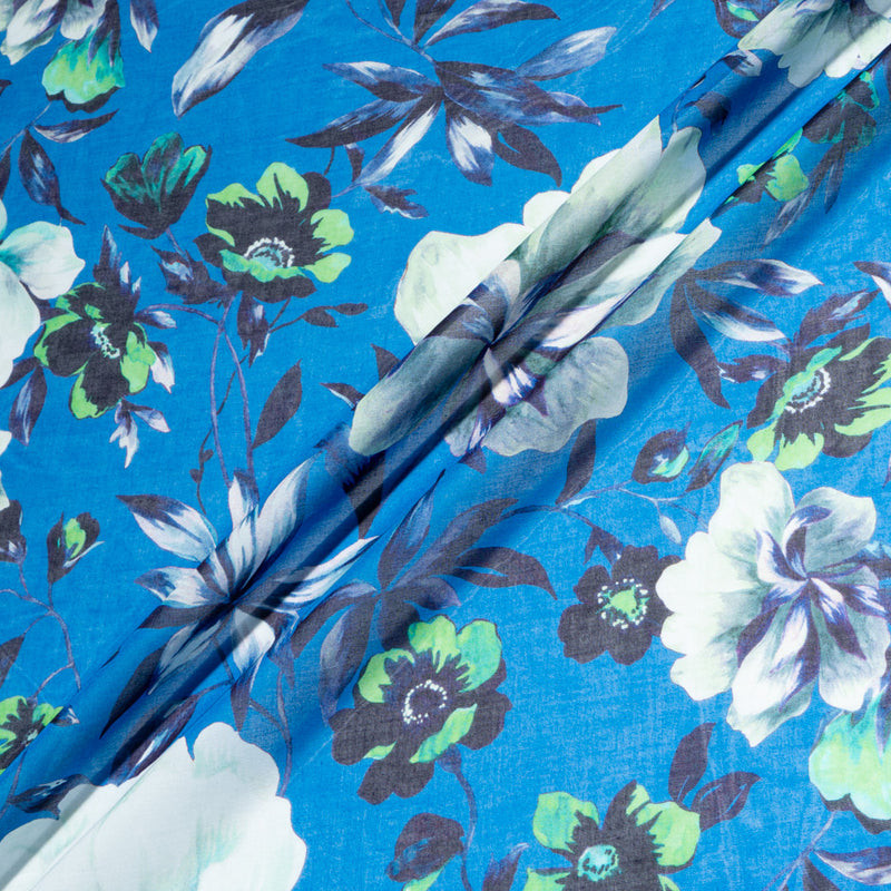 Floral Printed Deep Sky Blue Pure Cotton Voile