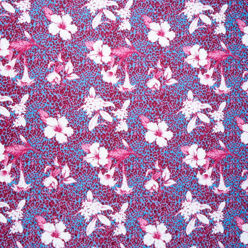 Floral Printed Fuchsia & Blue Leopard Silk Satin Charmeuse