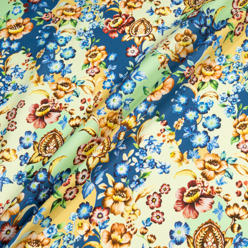 Floral Printed Mint, Blue & Yellow Cotton & Wool Blend