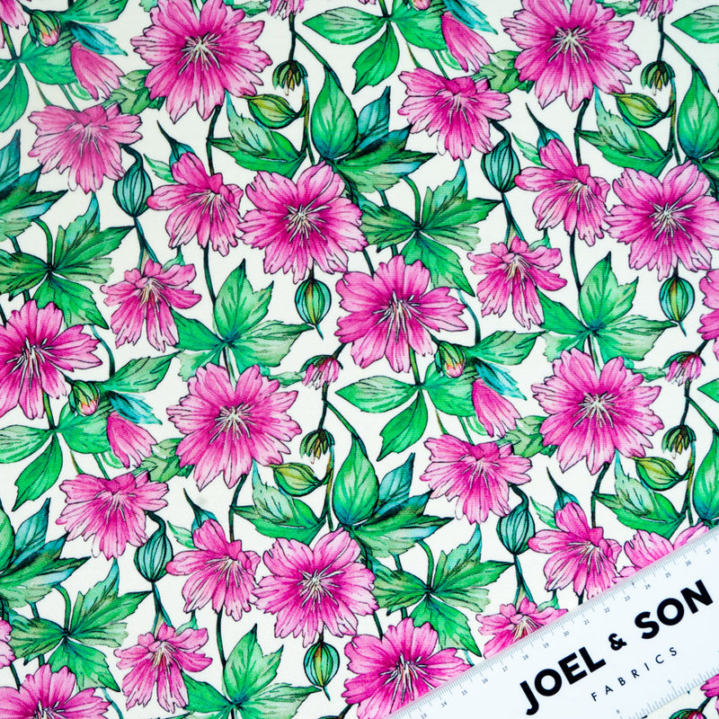 Fuchsia Pink Floral Printed Pure Silk Double Crêpe
