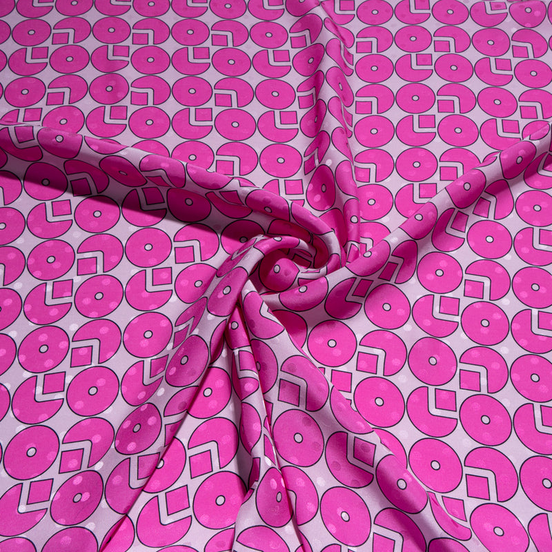 Fuchsia Pink Geometric Printed Silk Satin Jacquard