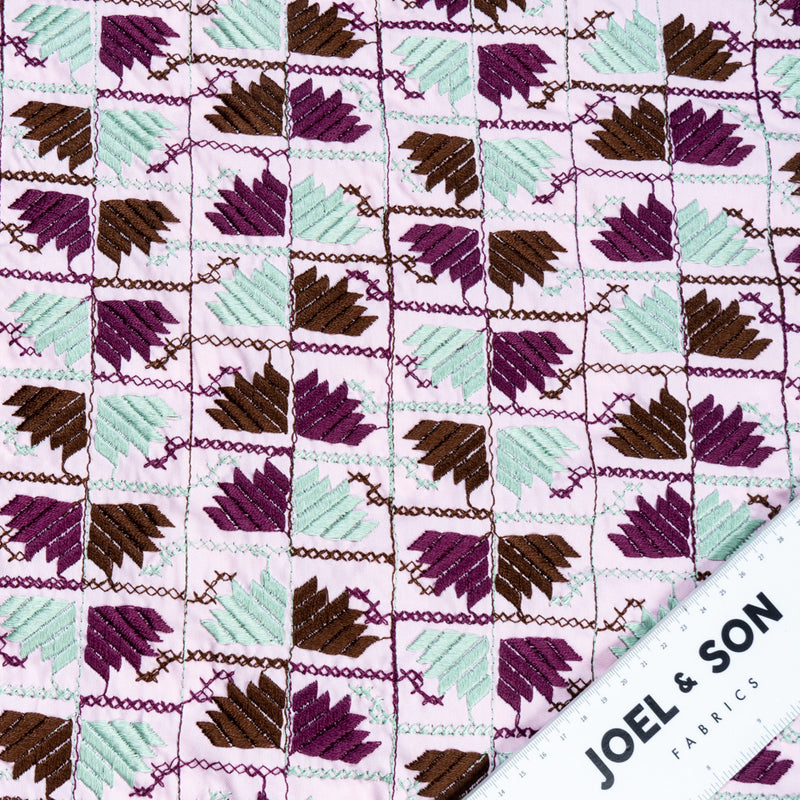 Mint, Plum & Brown Geometric Embroidered Cotton