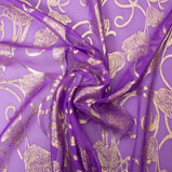 Gold Floral Metallic Violet Silk Chiffon Jacquard