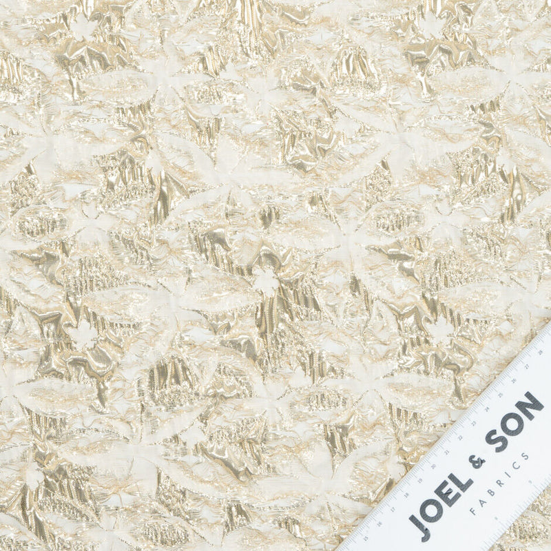 Gold Metallic Abstract Floral Ivory Silk Cloqué