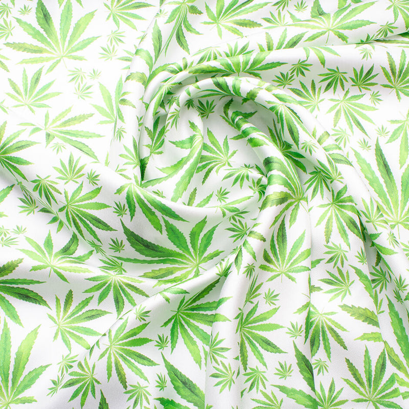 Green Cannabis Printed White Silk Twill