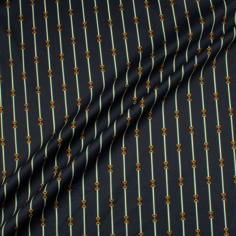 Green & White Striped & Link Printed Shirting Cotton (A 2.50m Piece)
