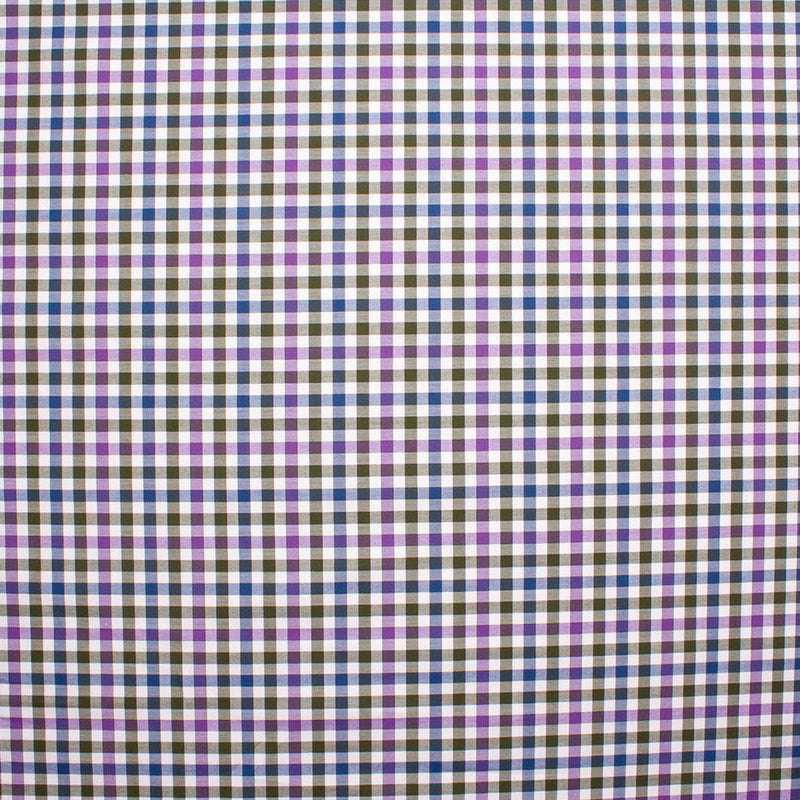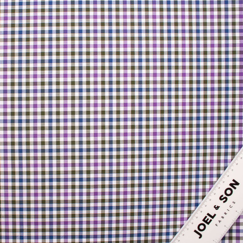 Grey, Blue & Purple Gingham Checkered Pure Cotton Shirting