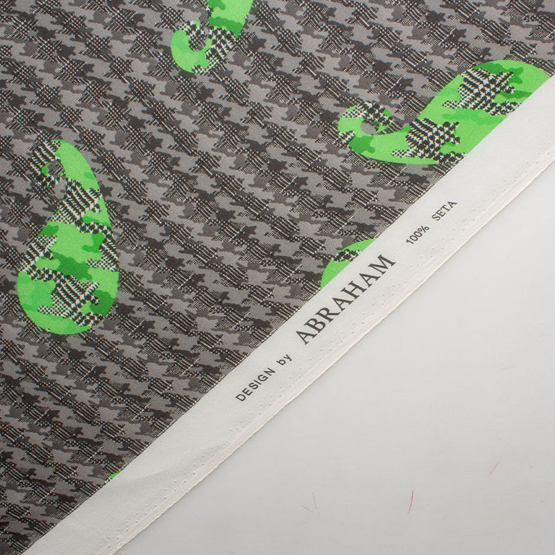 Grey Houndstooth Printed Pure Silk Georgette Fabric