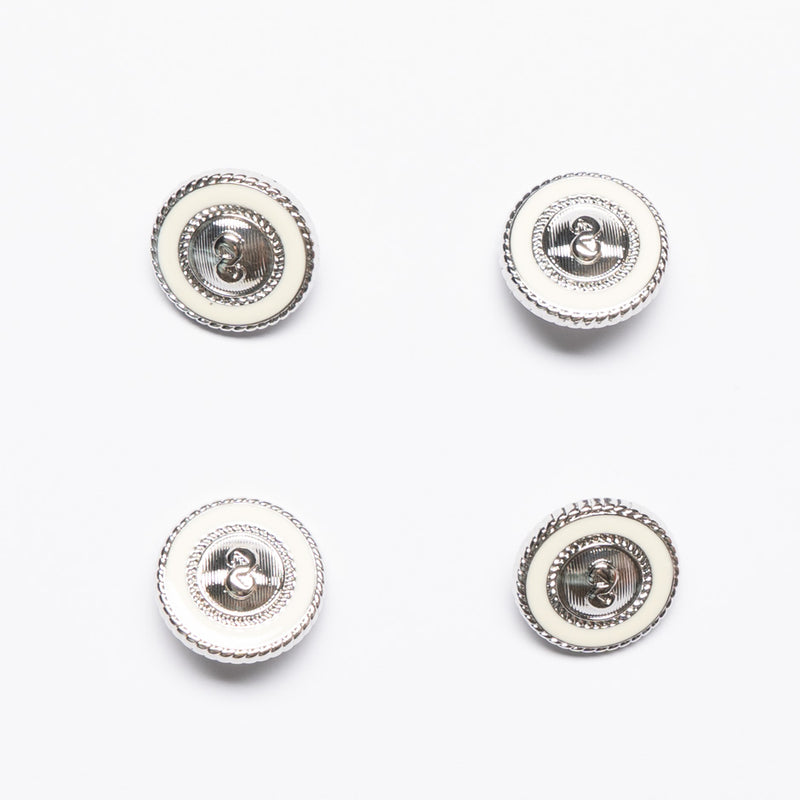 Cream Enamel Round Silver Button