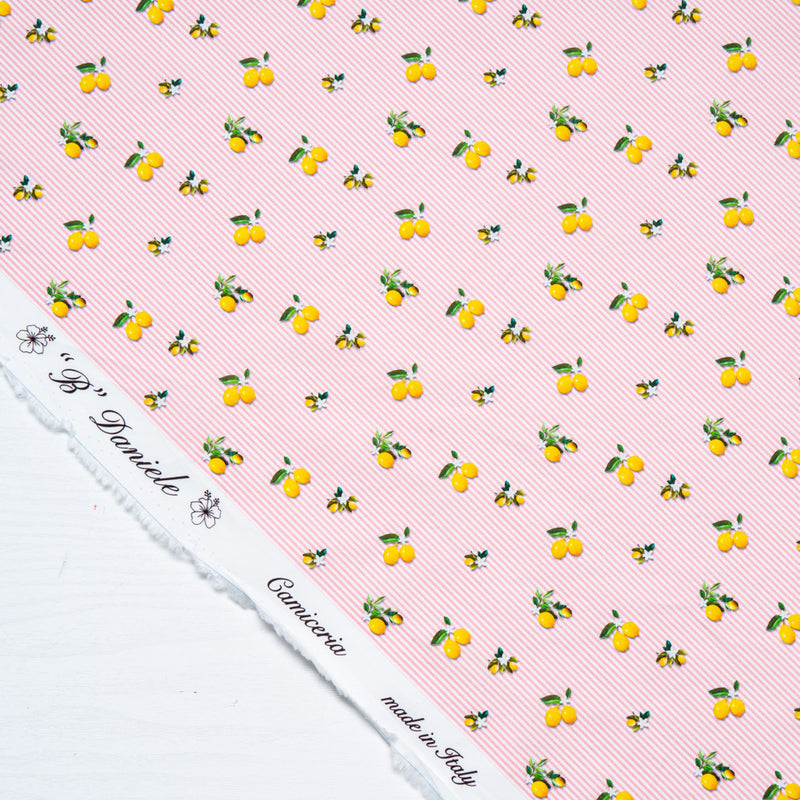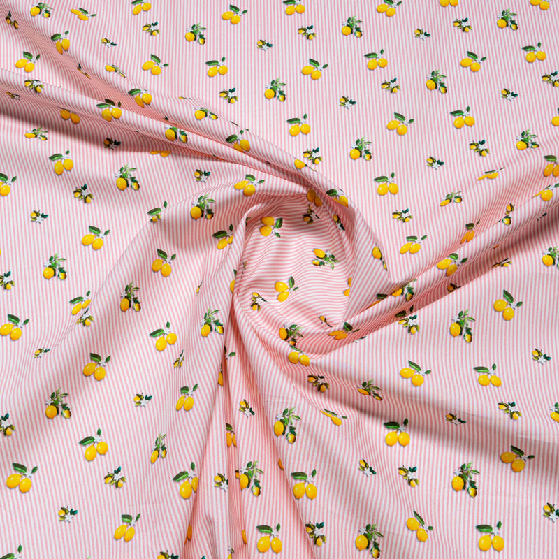 Lemon Printed Pink Striped Pure Cotton (A 3.30m Piece)