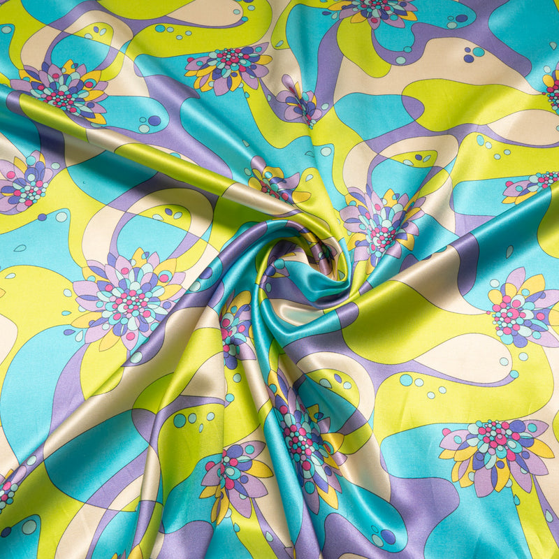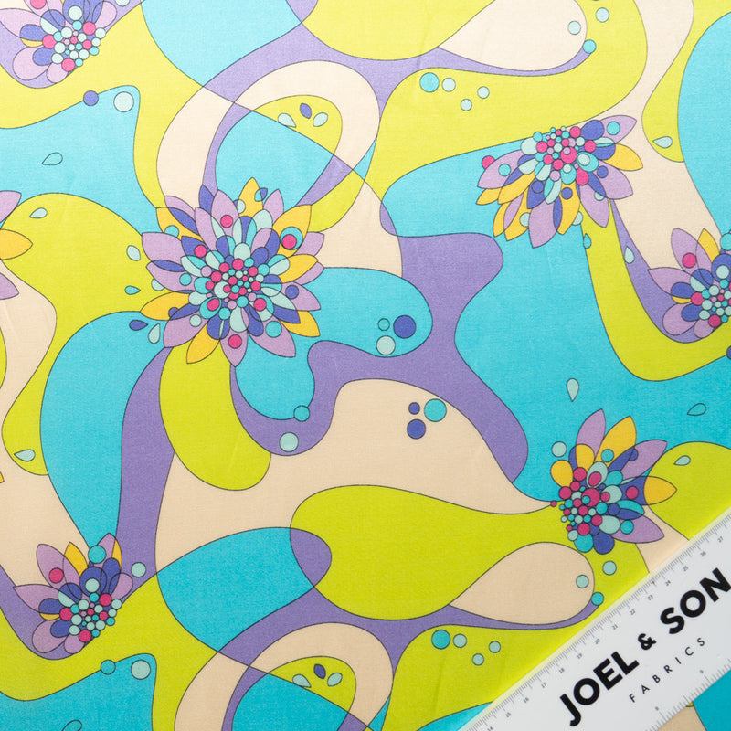 Lilac, Blue & Chartreuse Retro Printed Silk & Cotton Blend