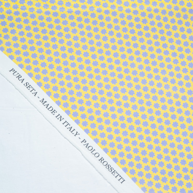 Periwinkle Blue Floral Printed Yellow Silk Georgette