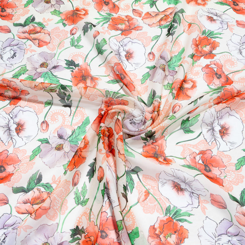 Lilac & Red Poppy Printed Pure Silk Georgette