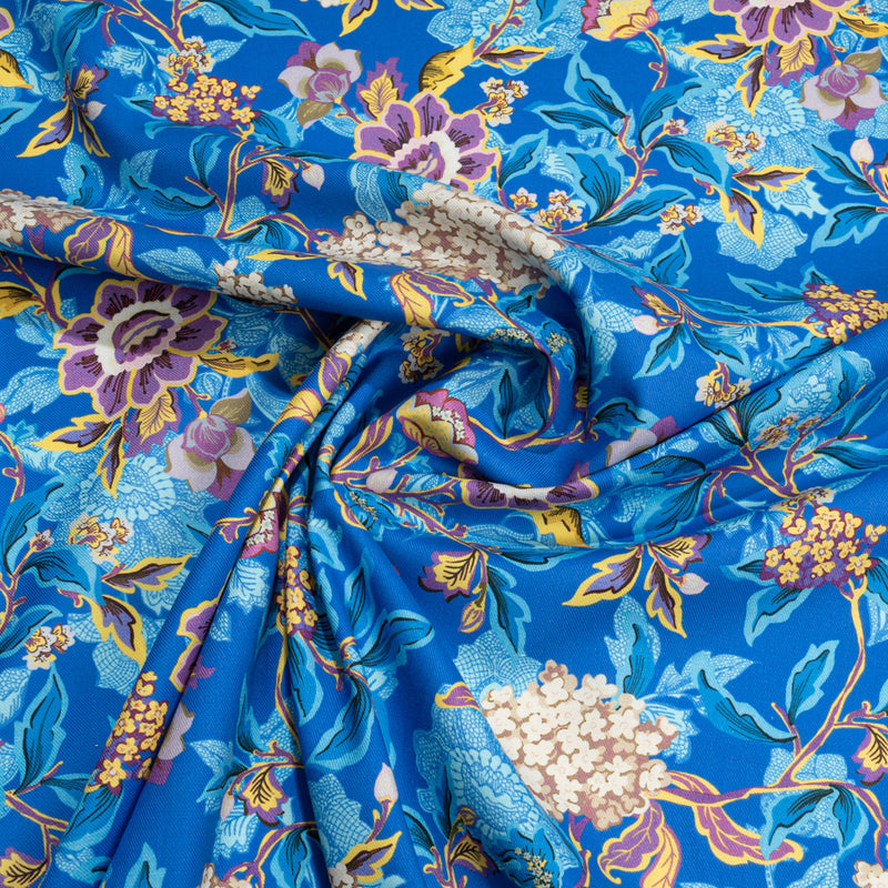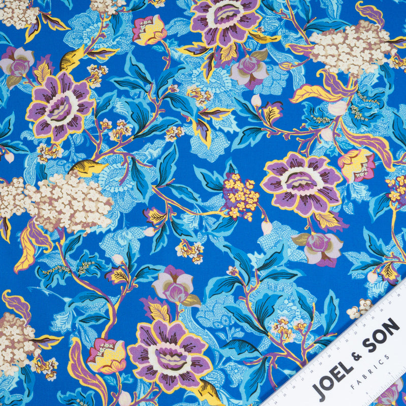 Lilac Floral Printed Royal Blue Wool & Cotton Blend