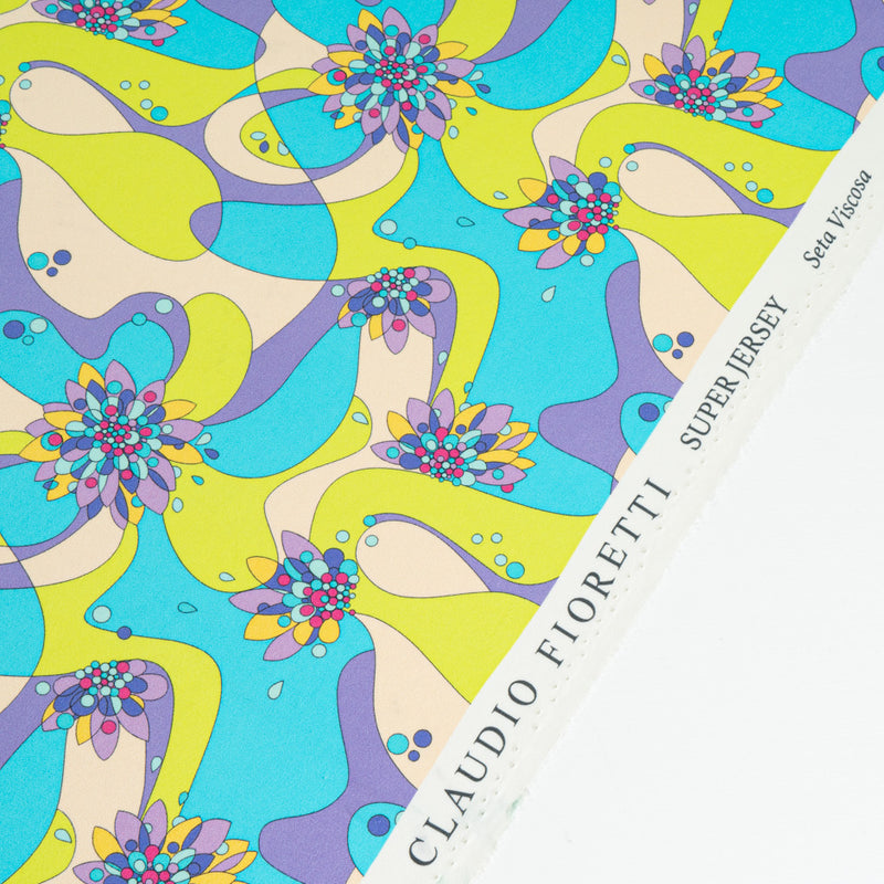 Lime Green, Turquoise & Purple Patterned Silk & Viscose Jersey
