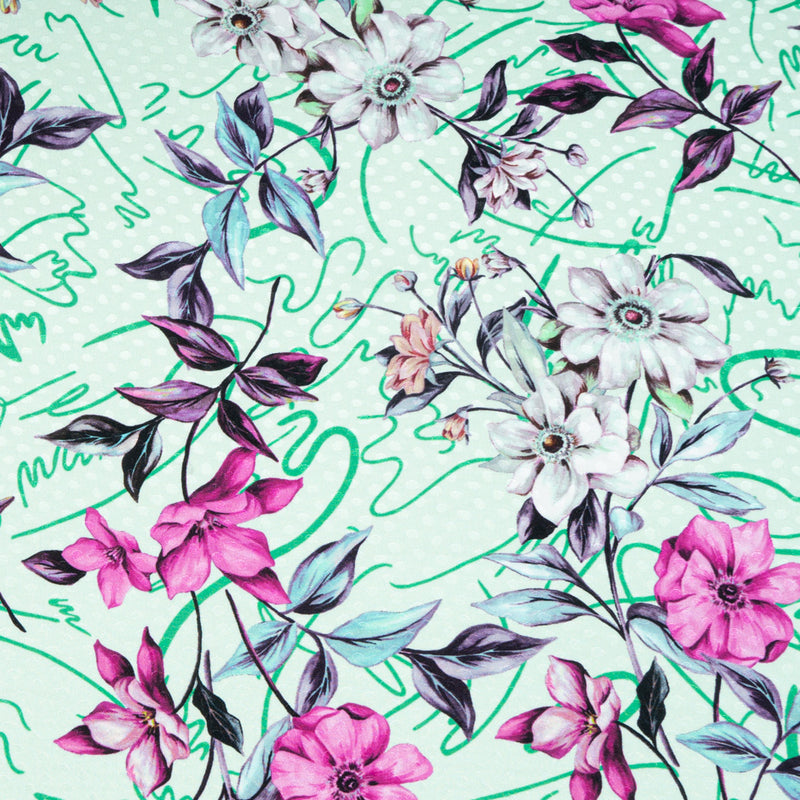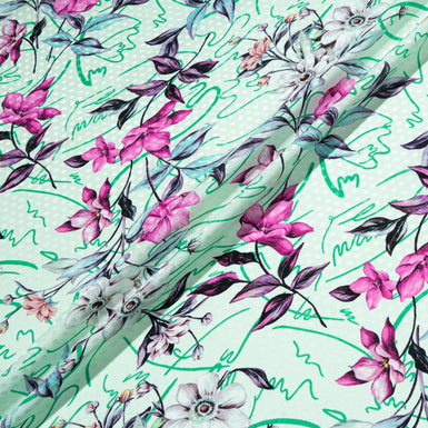 Deep Magenta Floral Printed Mint Green Silk Jacquard
