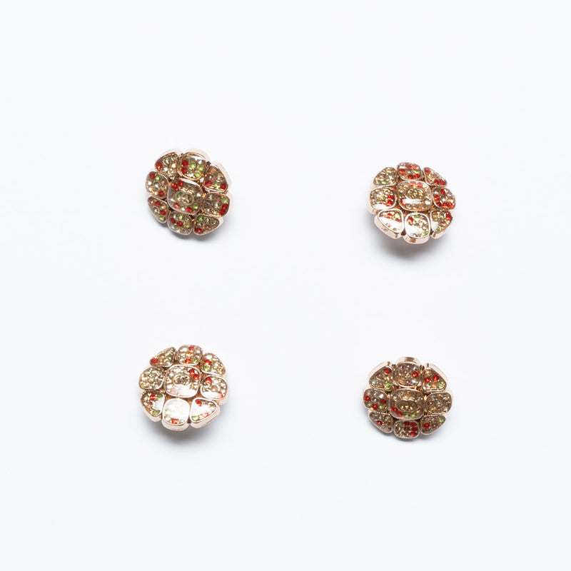 Medium Multi-Coloured Diamanté Floral Gold Dress Button