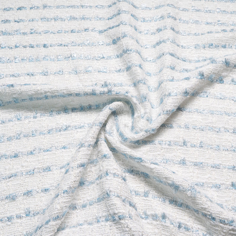 Metallic Blue & White Cotton Blend Bouclé