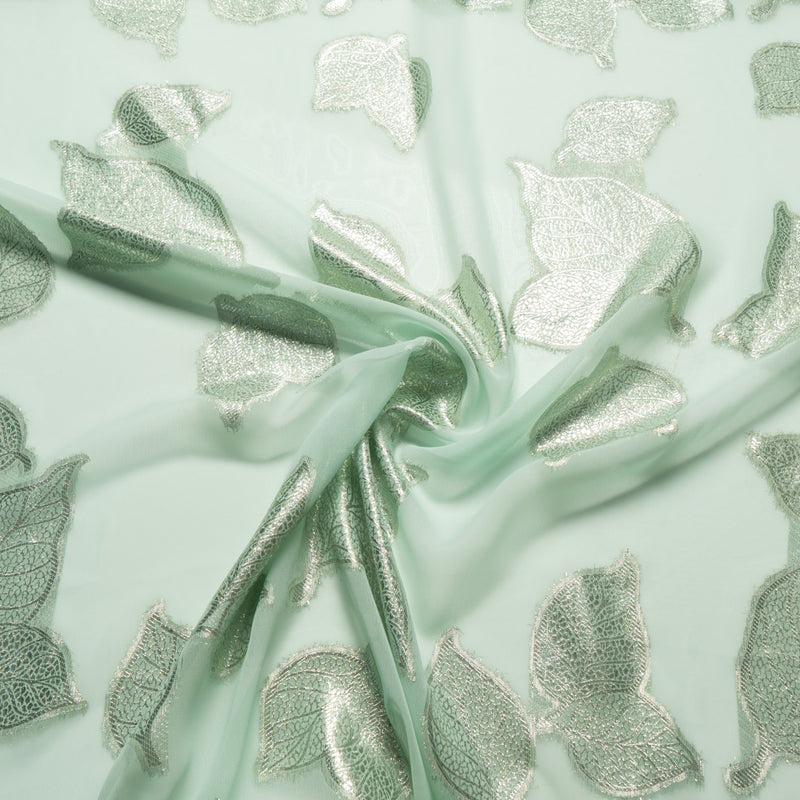 Metallic Leaf Mint Green Silk Chiffon