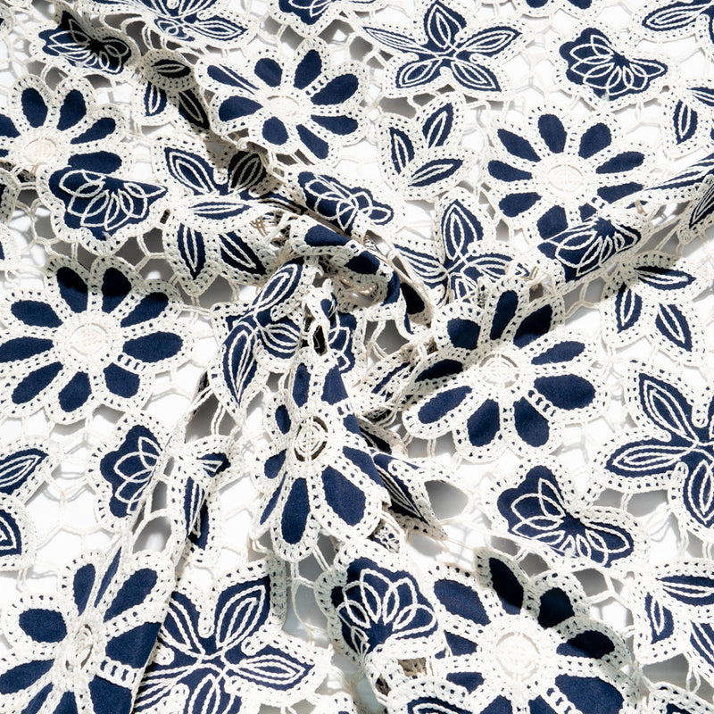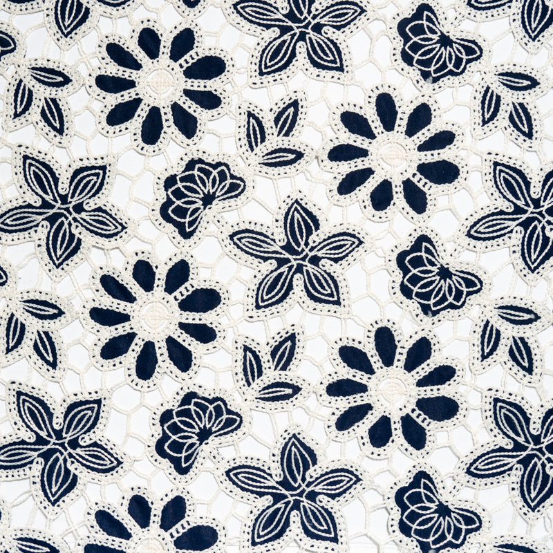 Midnight Blue & Cream Floral Embroidered Microfibre
