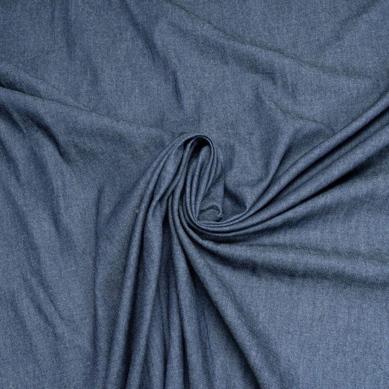 In a 70's style, a lightweight blue cotton denim with a multi-coloured floral embroidery. The ideal fabric for dresses, trousers and jackets. Take a look at our entire collection of denim for more inspiration. Embroidery 35cm wide.