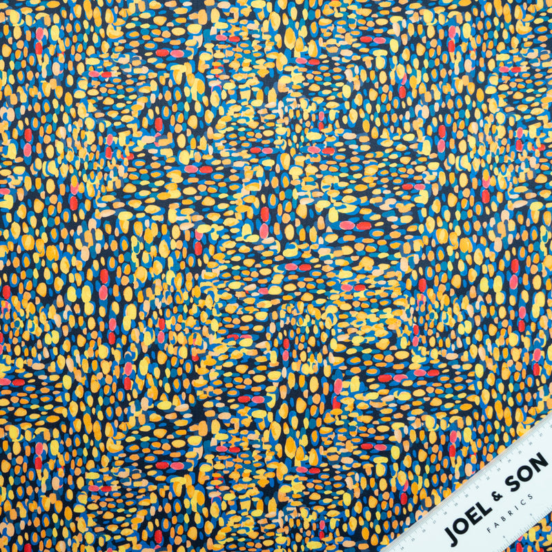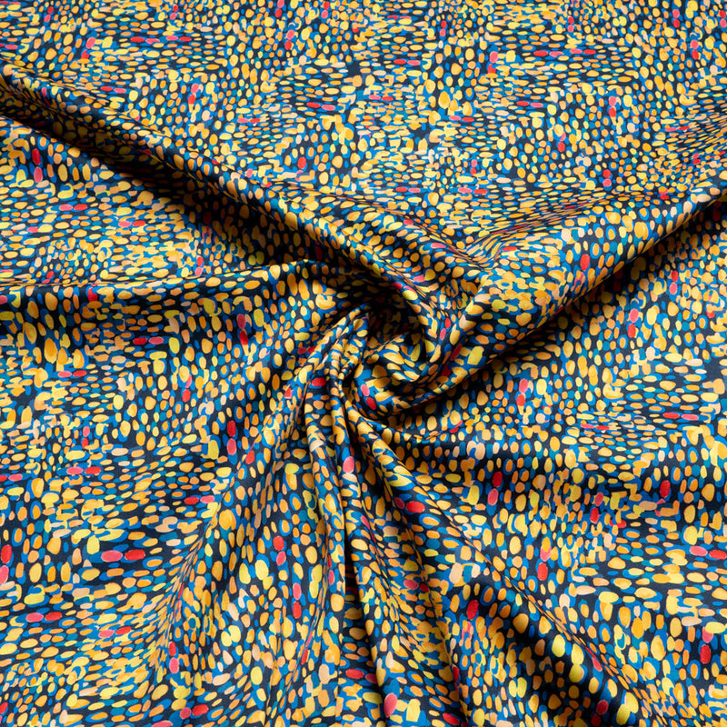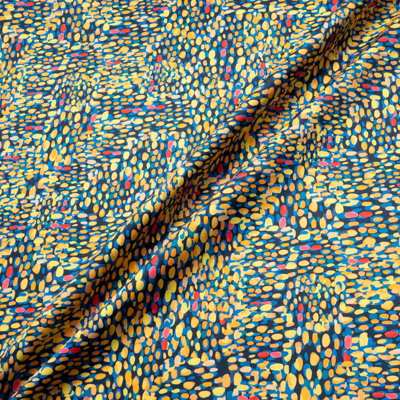 Multi 'Droplet' Printed Black Cotton Gaberdine