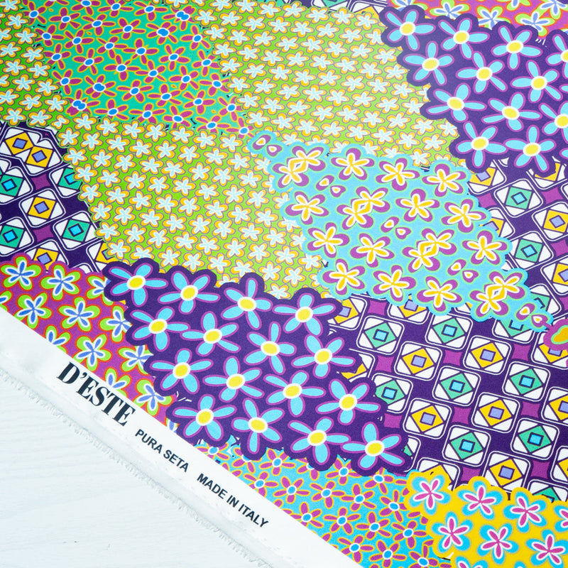 From the House of D'Este, widely known for their wonderful use of vibrant colour and imaginative fabric prints. D'este uses only the finest cotton and silk cloth. Take a look at our beautiful selection of printed cottons, colourful jacquards and fine silks fabrics.
